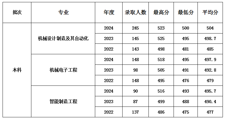 机械工程学院本科批次各专业近三年录取分数线(省内)