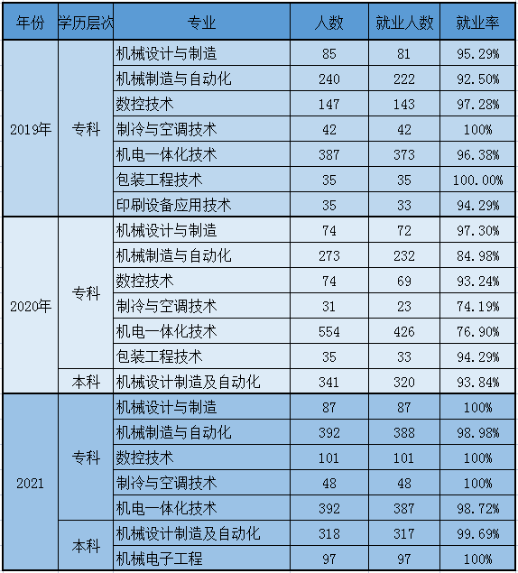 机械工程学院近三年就业率(2019-2021)