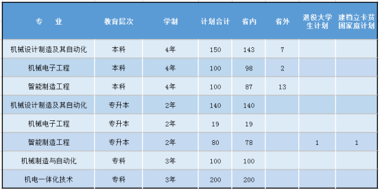 机械工程学院2021年招生计划