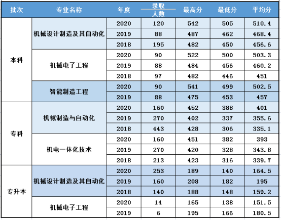 机械工程学院近三年各专业录取分数(2018-2020)
