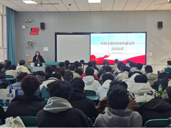 姚晓辉致辞并解读了《机械工程学院2025年学风建设实施方案》。她阐述了加强学风建设的重要意义,指出优良学风是治学之本、成才之基,是学院精神风貌的集中体现。她对全体同学提出三点希望:一是要志存高远,明确学习目标,将个人成长融入国家发展大局;二是要勤勉务实,练就过硬本领,珍惜时光,沉心静气,打牢专业基础;三是要严守纪律,共建良好氛围,自觉遵守校纪校规,共同维护浓厚的学习环境。她勉励全院师生以此次活动月为契机,携手推动学院学风建设再上新台阶。