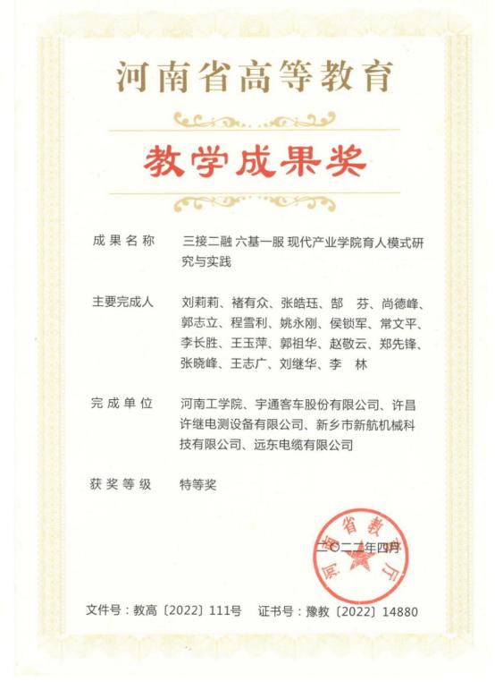 三接二融六基一服现代产业学院育人模式研究与实践--省特等奖